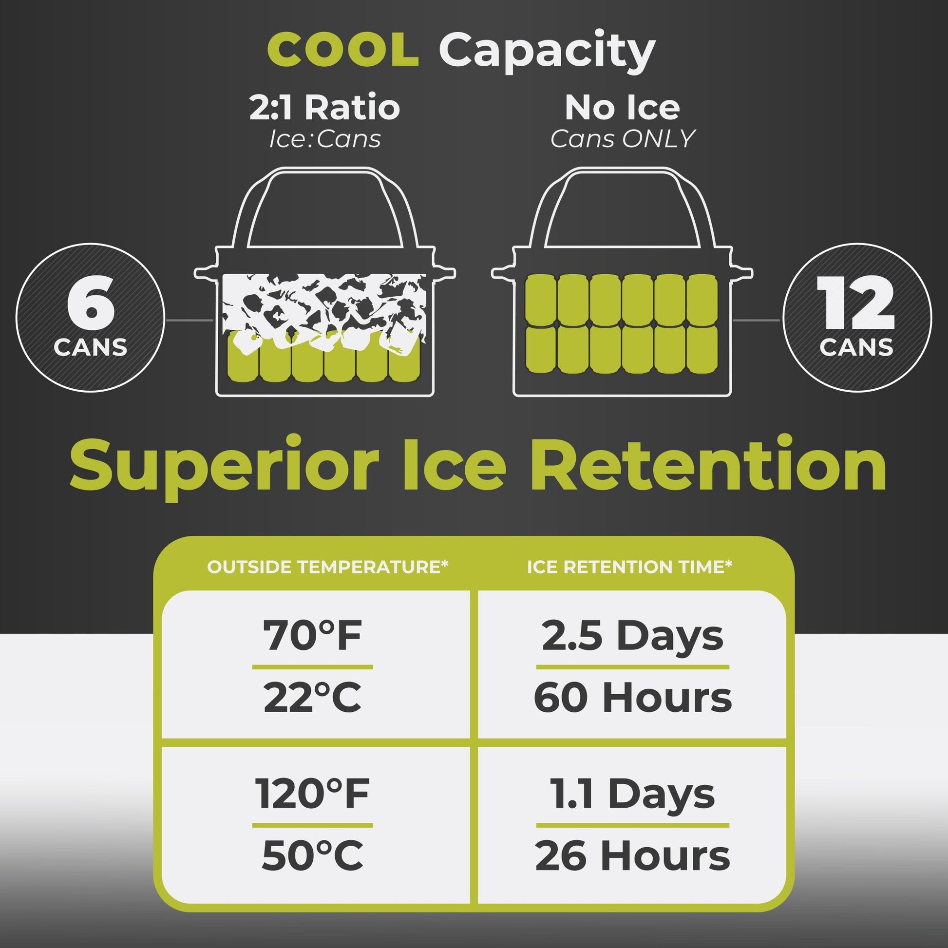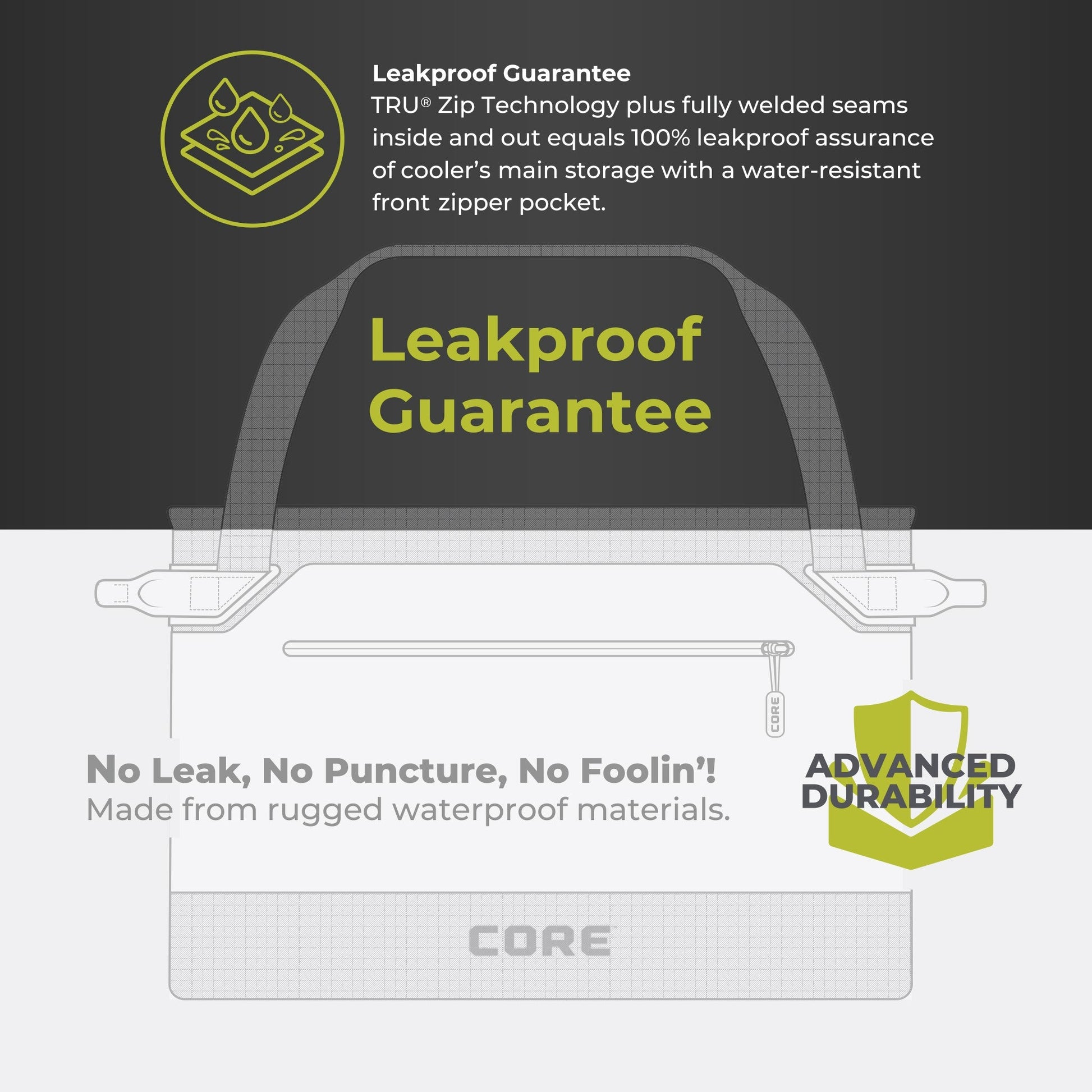 - SUPERIOR ICE RETENTION: CORE COOL™ Insulation keeps contents chilled up to 2.5 days, using high-density EVA foam to retain cold, combined with reflective mylar film to repel heat.