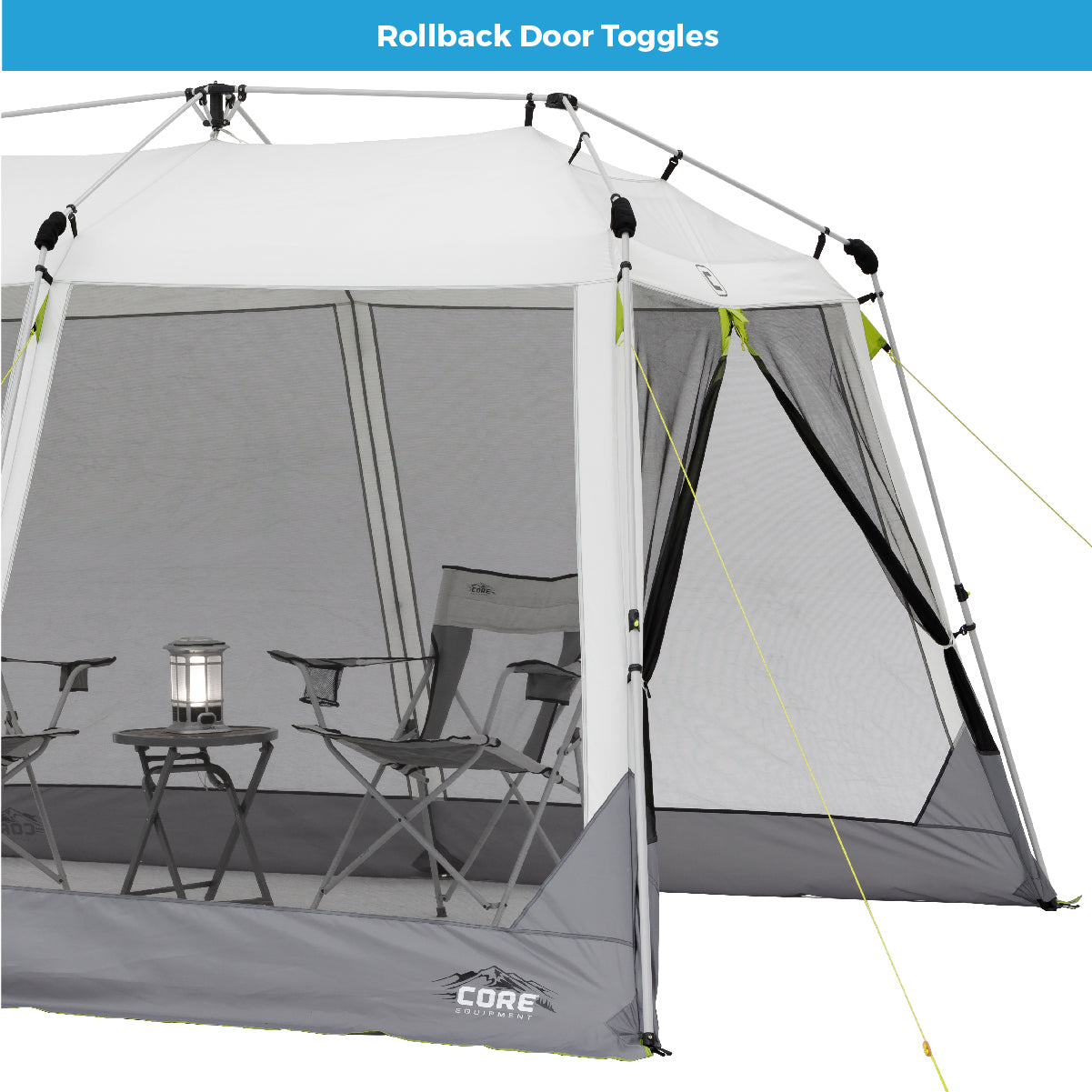 - INSTANT SETUP: The screen house body with pre-attached poles that lock into place creates a setup time as short as 60 seconds.