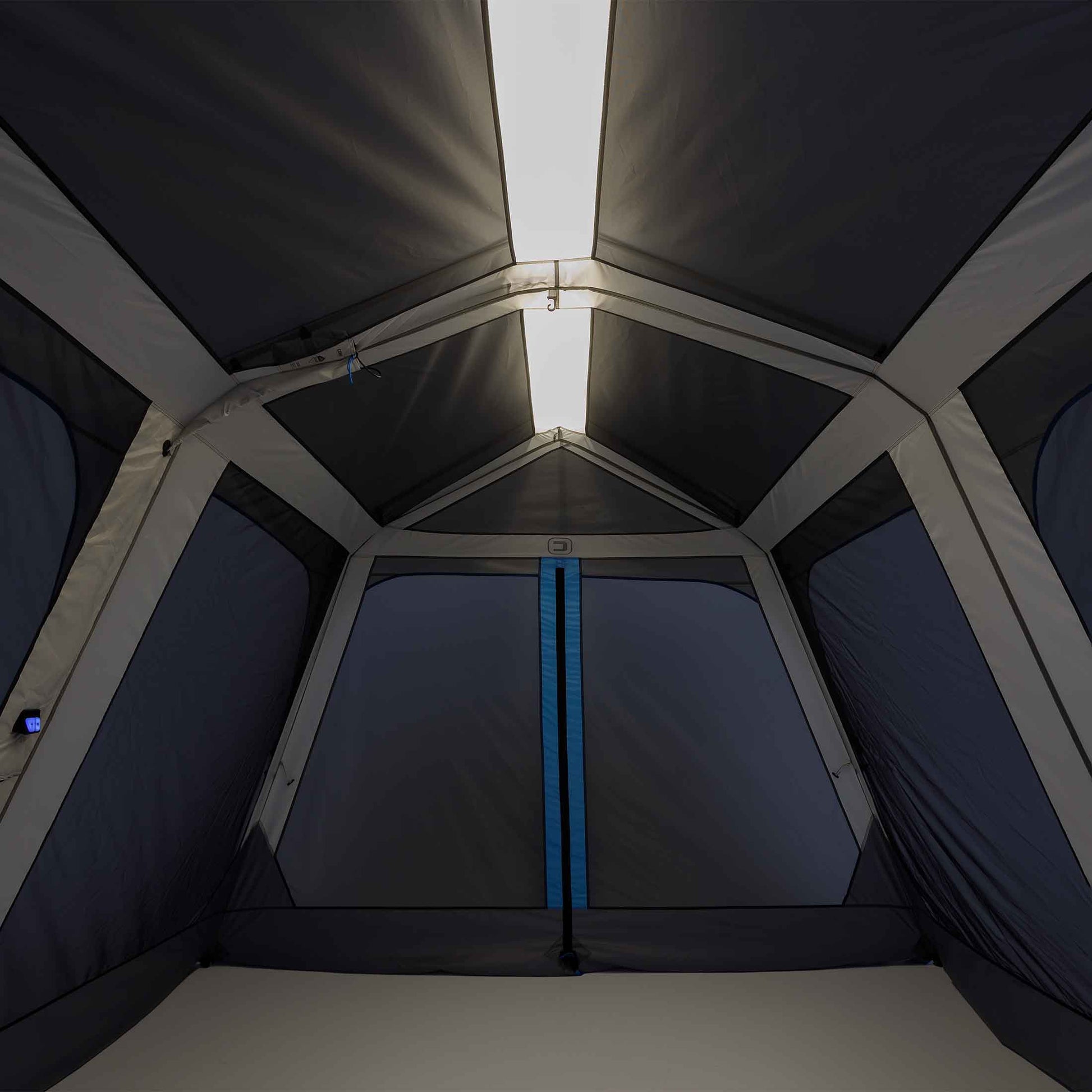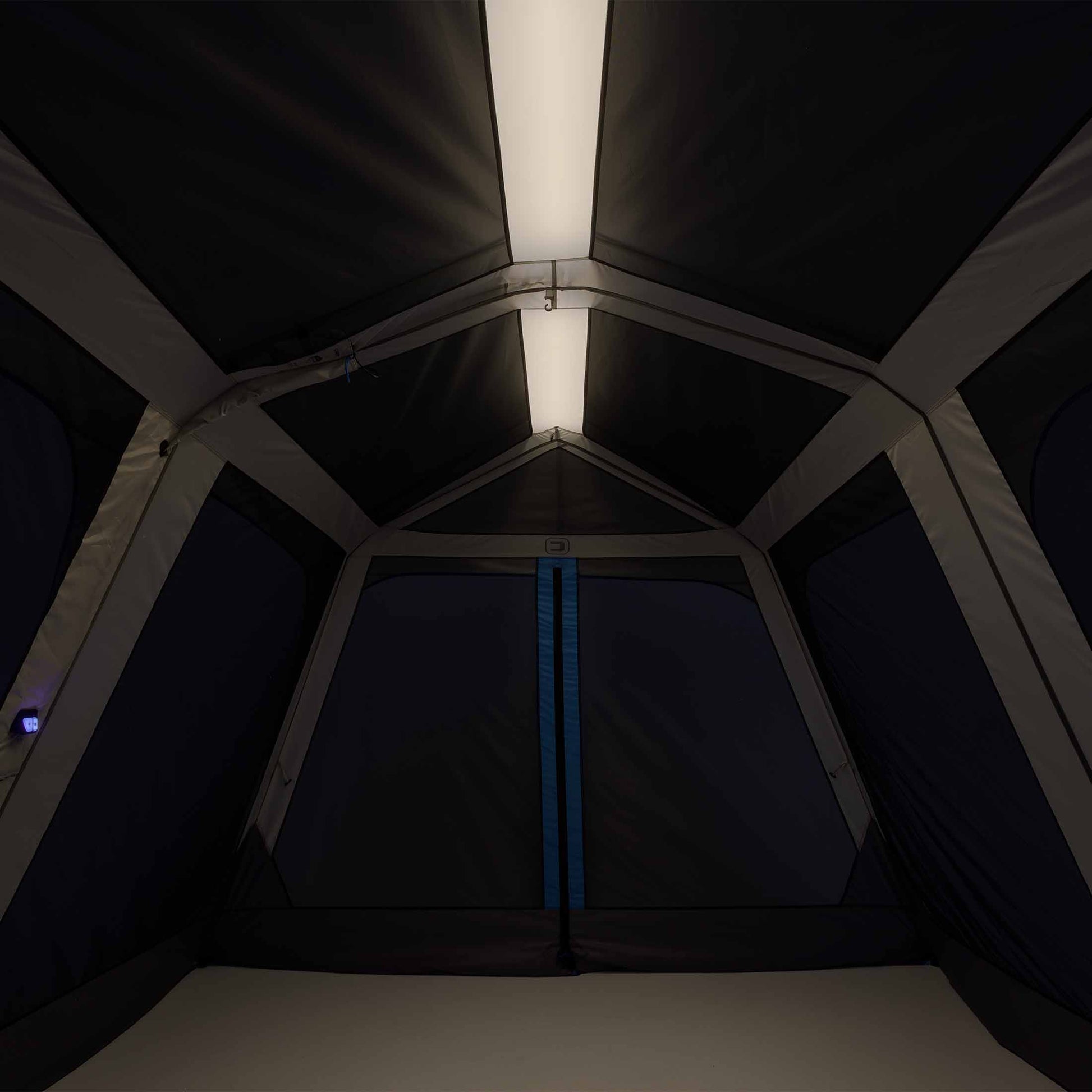 - BUILT-IN LED LIGHTING: A wall switch controls LED lights built into the ceiling poles with 3 levels of glare-free, evenly spread lighting: high, low, and night light.