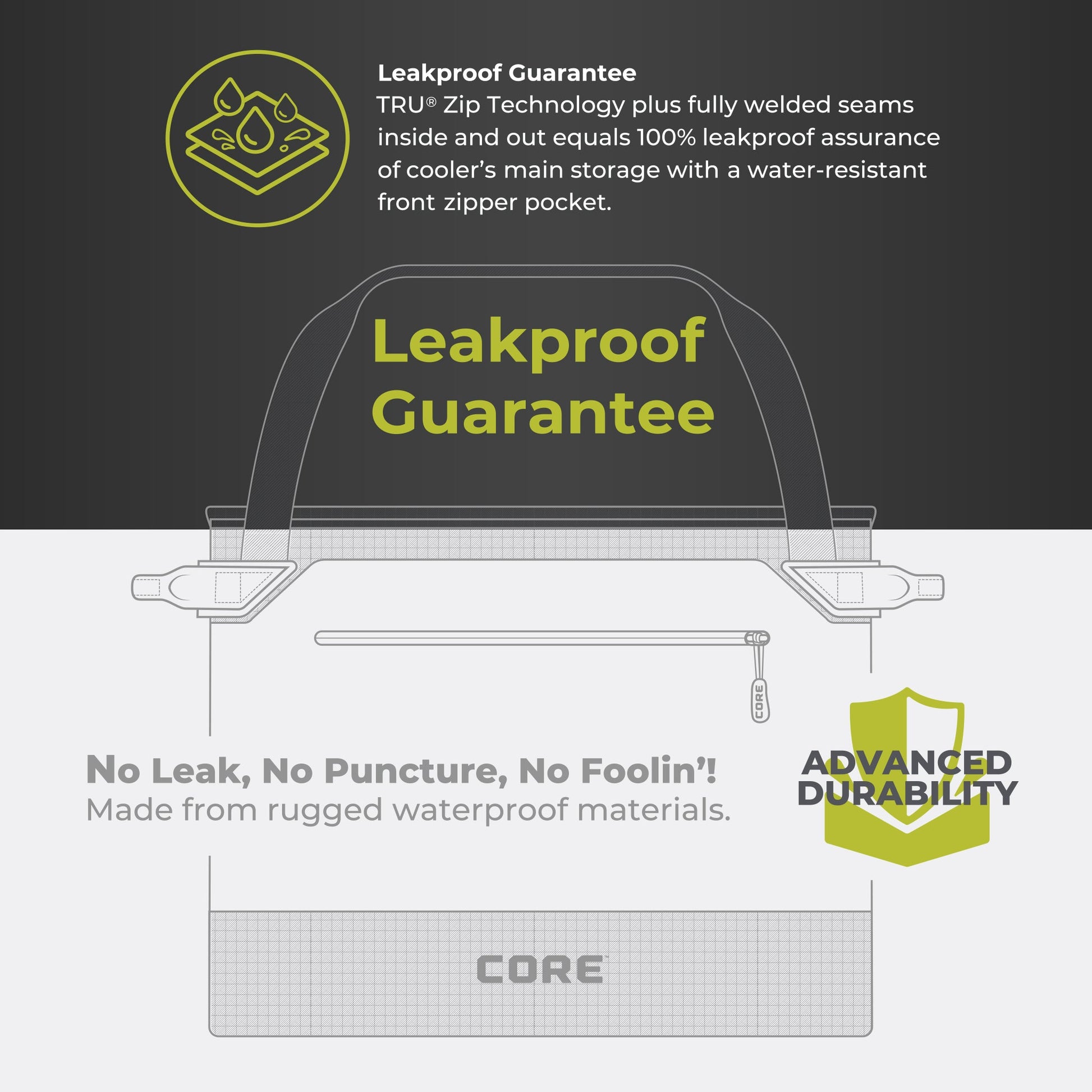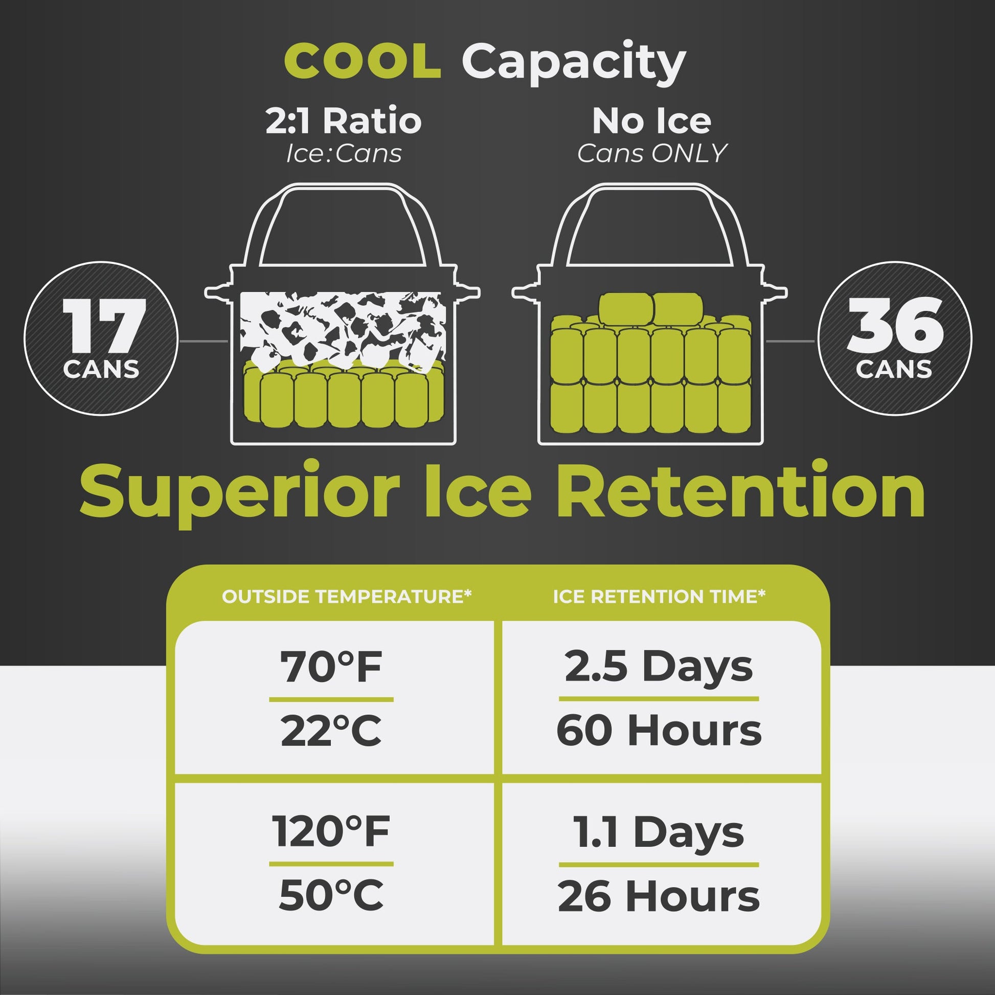 - SUPERIOR ICE RETENTION: CORE COOL™ Insulation keeps contents chilled up to 2.5 days, using high-density EVA foam to retain cold, combined with reflective mylar film to repel heat.