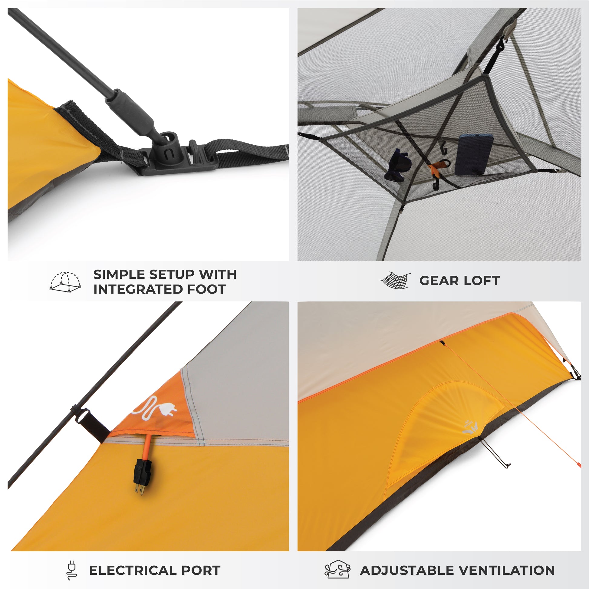 - WHAT’S IN THE BAG: Includes tent, rainfly with attached guylines, gear loft, poles, awning pole, tent stakes, and carry bag.