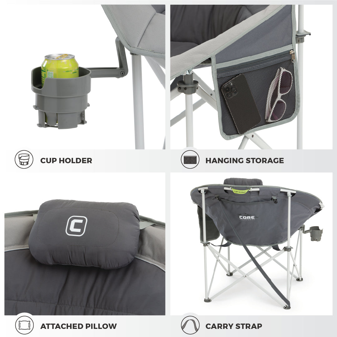 - PORTABLE: The chair easily folds up and fits in the included carry bag with shoulder strap for simple transport and storage.