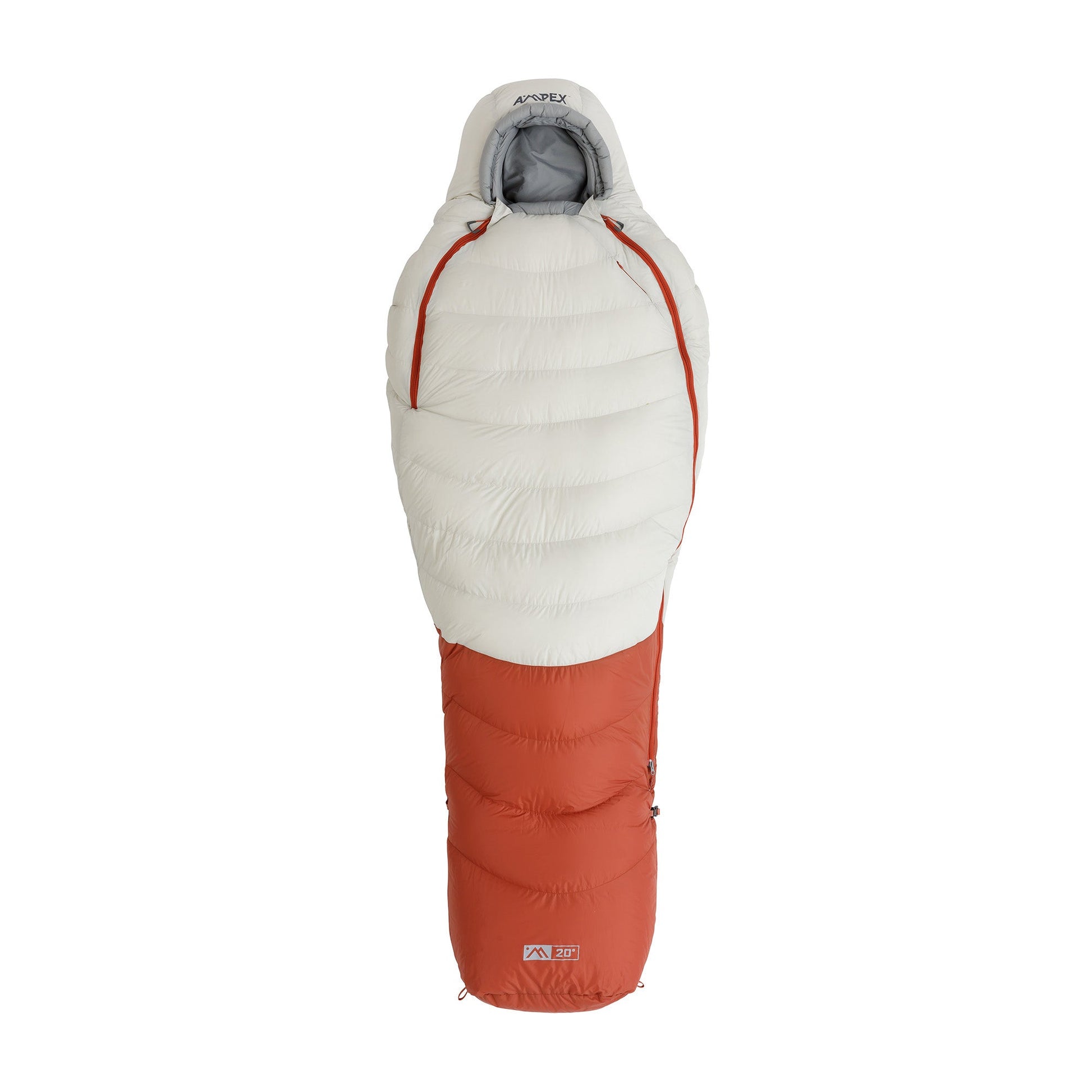 - Integrated straps connect the sleeping bag to AMPEX camp pads