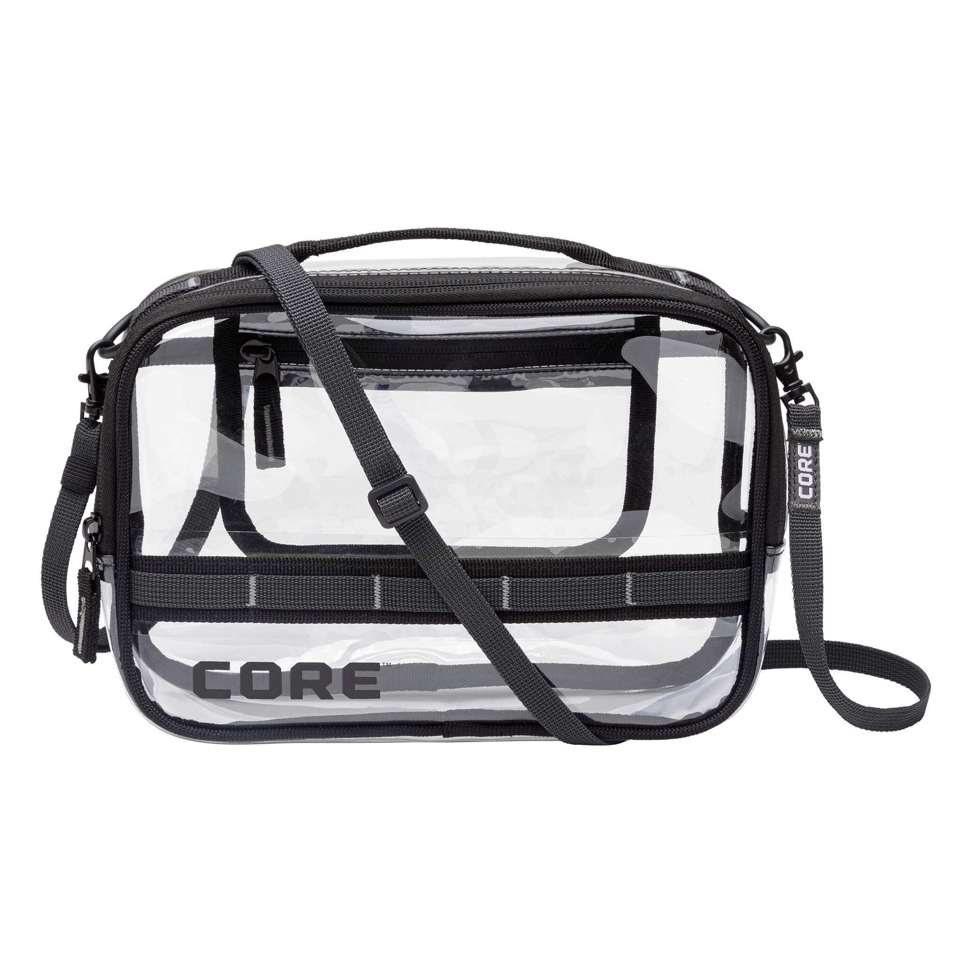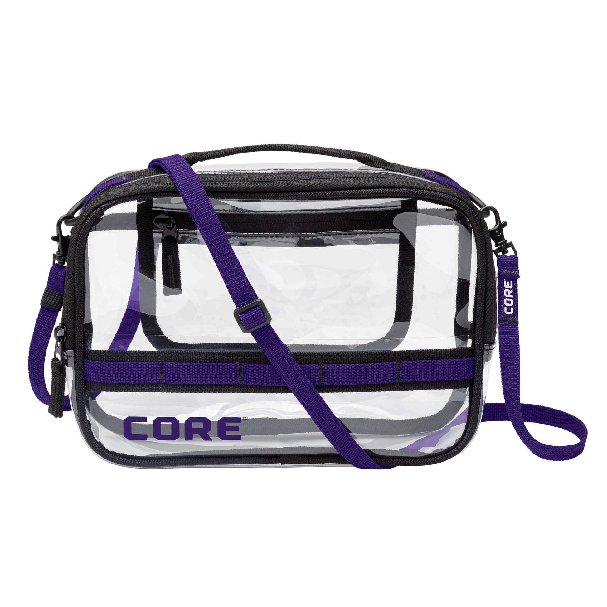 Get to game day quicker with a CORE stadium bag. Designed for stadium-compliant entry that’s fast and stress-free, this clear bag keeps your essentials visible, organized, and easy to manage at the gates. An external pocket, internal zippered pocket, and built-in key leash keep items secure and within reach. The adjustable strap offers comfortable carry from kickoff to the final whistle, so you can focus less on the line and more on the game.